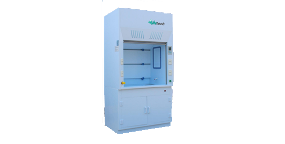Cabina extracción de gases VMTECH , Especial para gases ácidos Dimensiones externas con base (LxWxH): 120x80x240 cm. Dimensiones área de trabajo (LxWxH): 102x67x75 cm. Velocidad Variable de tres posiciones vía electrónica Motor Monofásico jaula de ardilla Material: Cabina de polipropileno; Base de trabajo de resina epóxica resistente a los químicos.